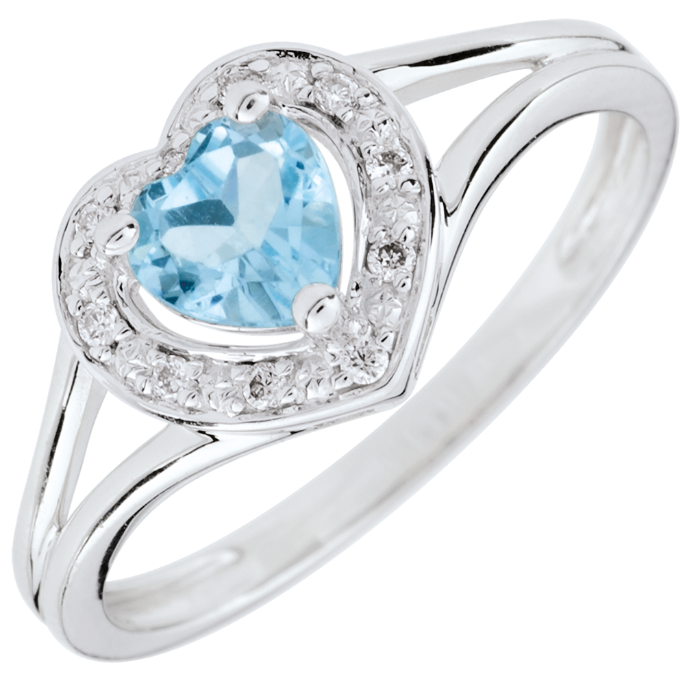 Pierścionek w kształcie serca Oczarowanie - niebieski topaz - złoto białe 9-karatowe