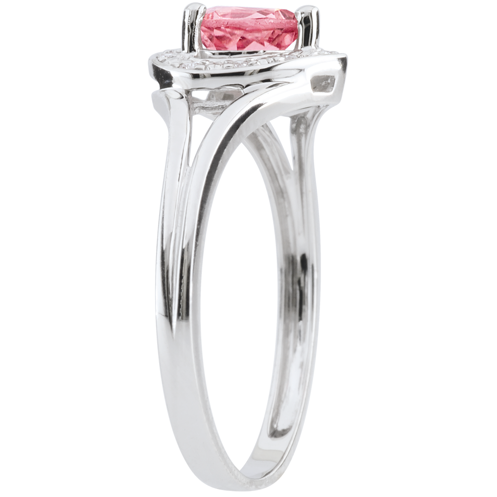 Pierścionek w kształcie serca Oczarowanie - turmalin różowy - złoto białe 18-karatowe