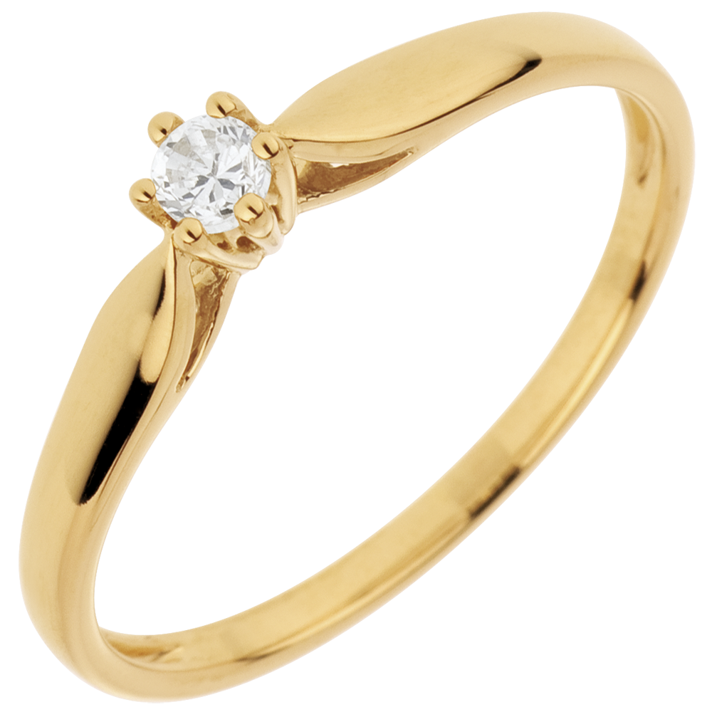 Pierścionek w kształcie trzciny z jednym diamentem oprawionym w 6 krap - 0,07 karata - złoto żółte 18-karatowe