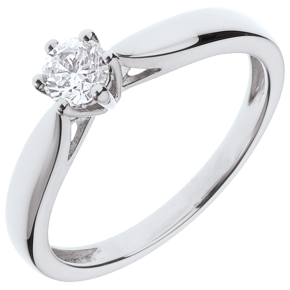 Pierścionek w kształcie trzciny z jednym diamentem oprawionym w 6 krap - złoto białe 18-karatowe - 0,3 karata