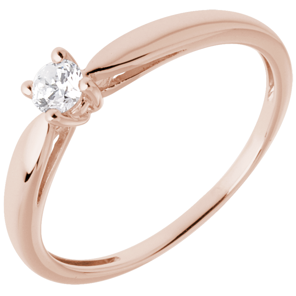 Pierścionek w kształcie trzciny z różowego złota 18-karatowego z jednym diamentem środkowym - 0,13 karata