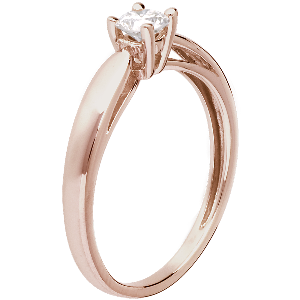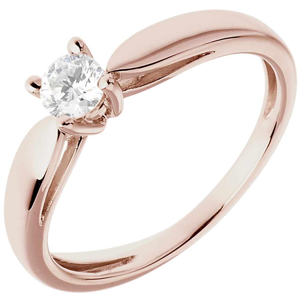 Pierścionek w kształcie trzciny z różowego złota 18-karatowego z jednym diamentem środkowym - 0,25 karata
