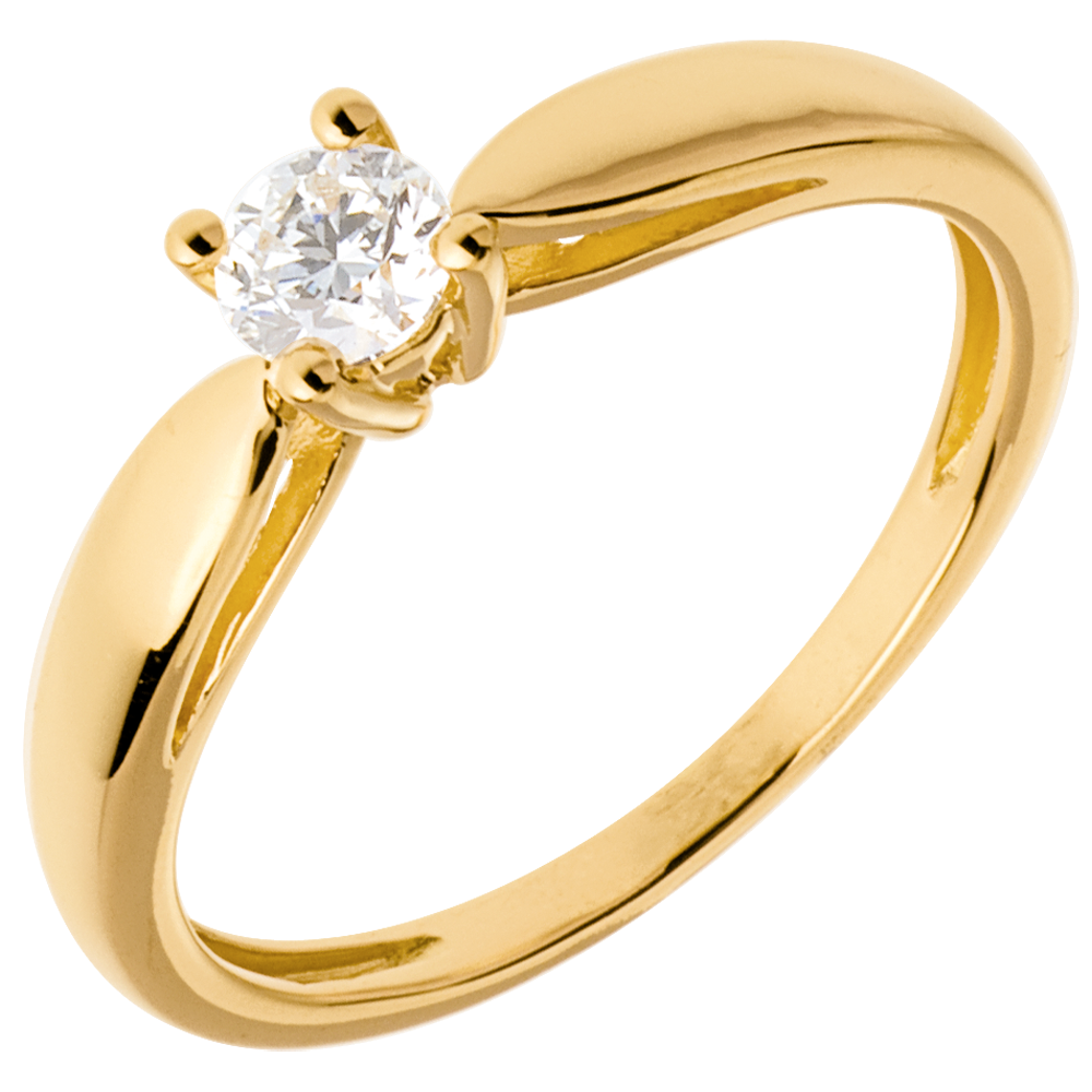 Pierścionek w kształcie trzciny z żółtego złota 18-karatowego z jednym diamentem - 0,26 karata