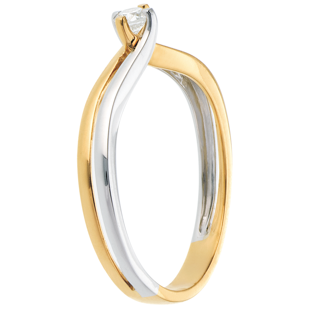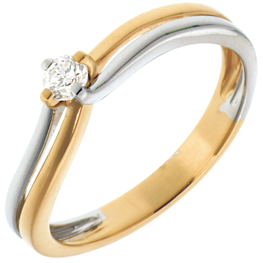 Pierścionek Linia z białego i żółtego złota 18-karatowego z jednym diamentem