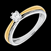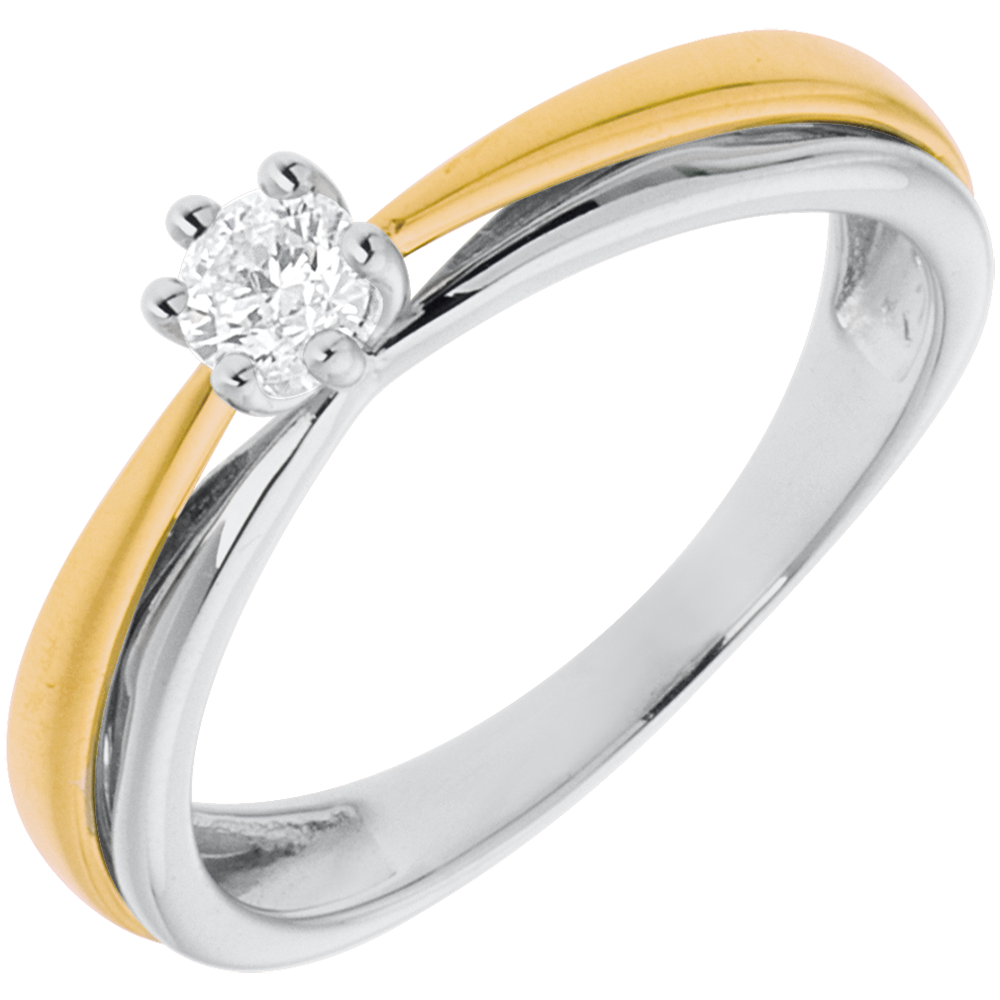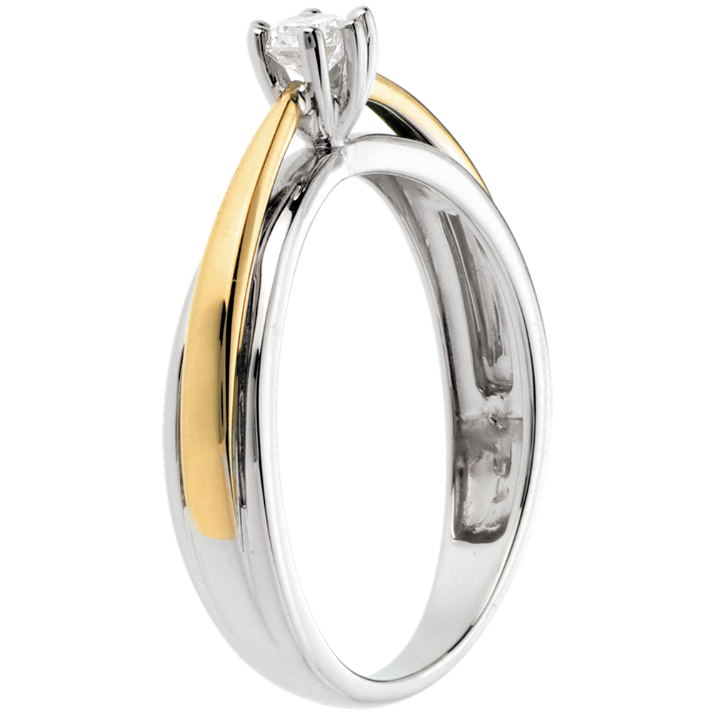 Pierścionek Łuk z jednym diamentem - diament 0,19 karata - złoto białe i złoto żółte 18-karatowe