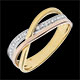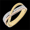 Obrączka z białego złota wysadzana diamentami i połączona z dwoma obrączkami z żółtego i różowego złota oferuje luksusową podróż po Saturnie. Ponadczasowy i kobiecy pierścionek z trzech rodzajów złota.