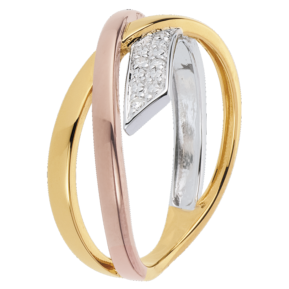 Pierścionek Mały Saturn wariacja 2 - trzy rodzaje złota - trzy rodzaje złota 18-karatowego