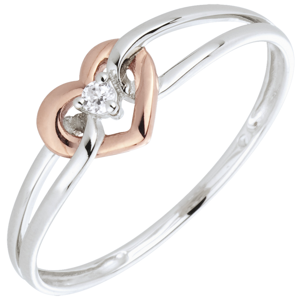 Pierścionek Moja Miłość - diament - złoto białe i złoto różowe 18-karatowe