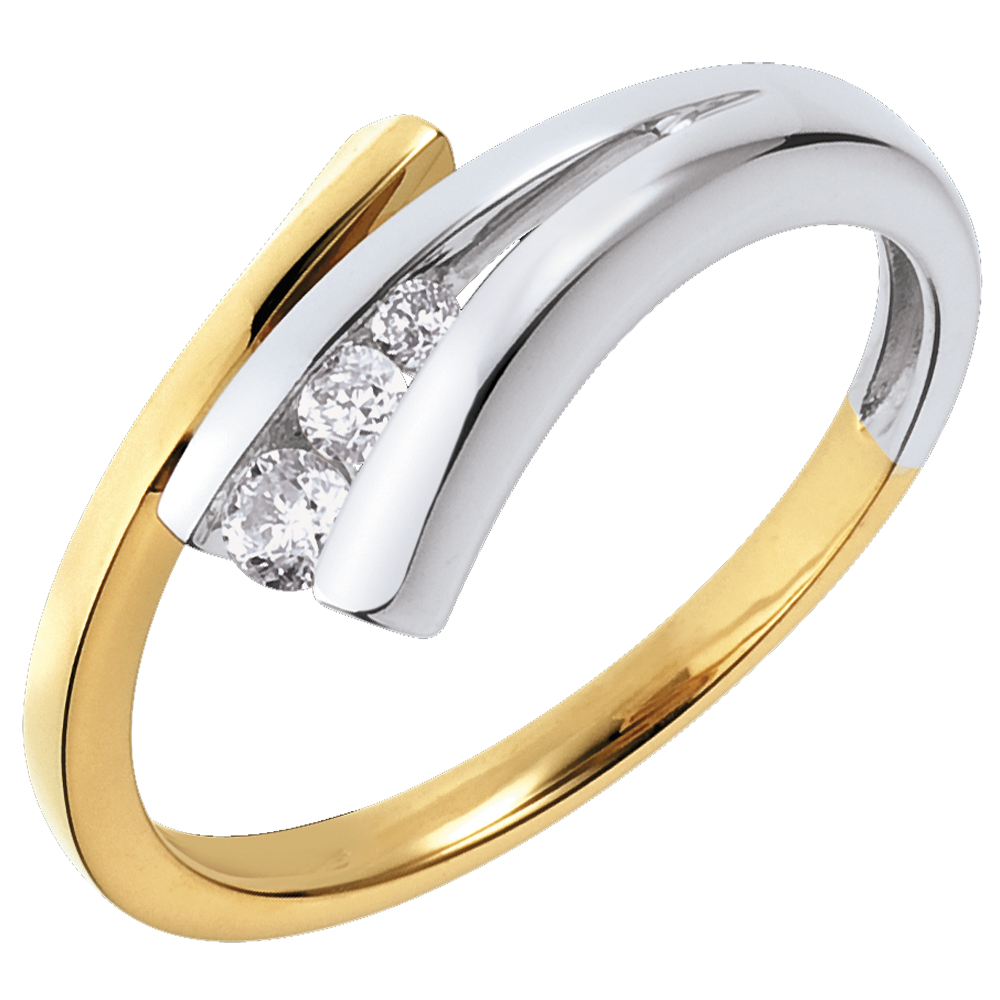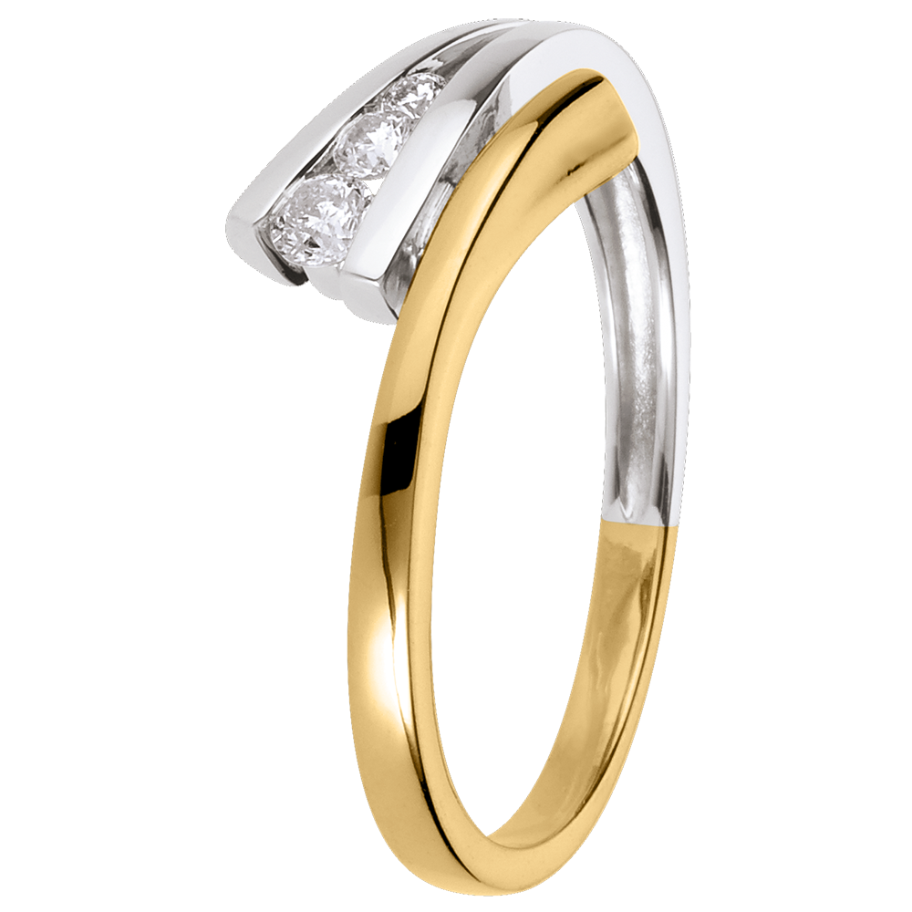 Pierścionek Narval z potrójnym diamentem - 3 diamenty - złoto białe i złoto żółte 18-karatowe