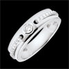Dwie linie diamentów na obrączce z białego złota połączone wokół diamentu środkowego jako wyraz obietnicy wieczności.