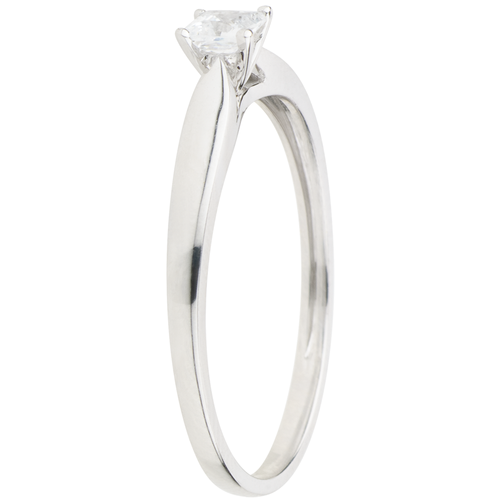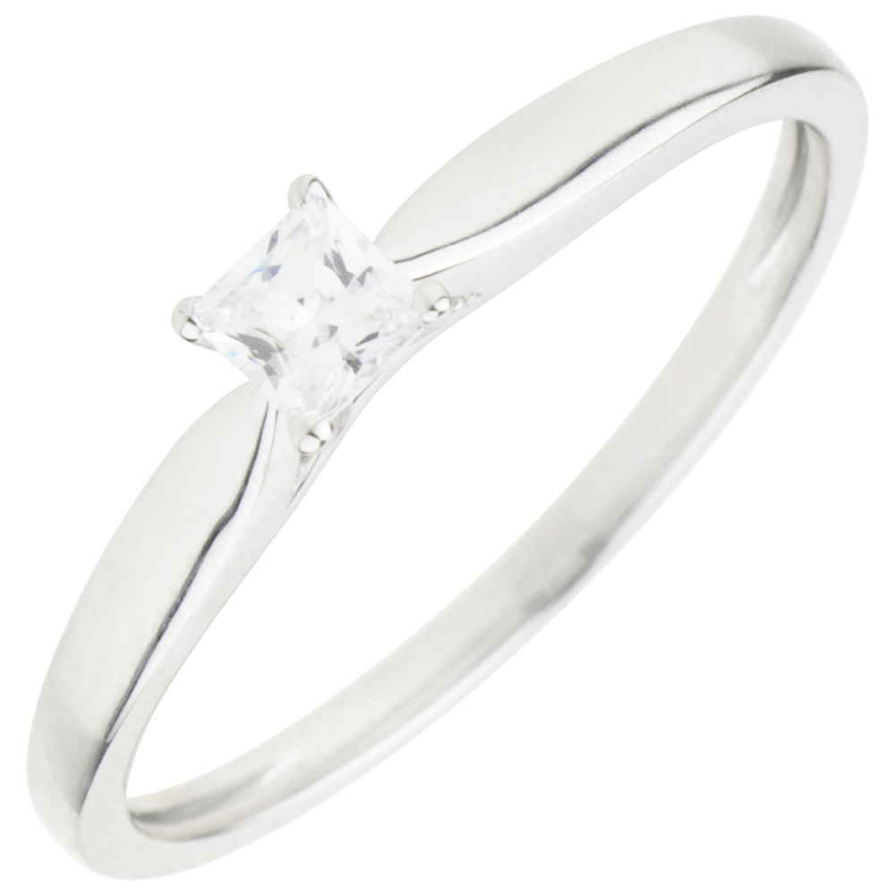 Pierścionek Objawienie z jednym diamentem - diament o szlifie „princessa” oprawiony w 4 krapy - złoto białe 9-karatowe