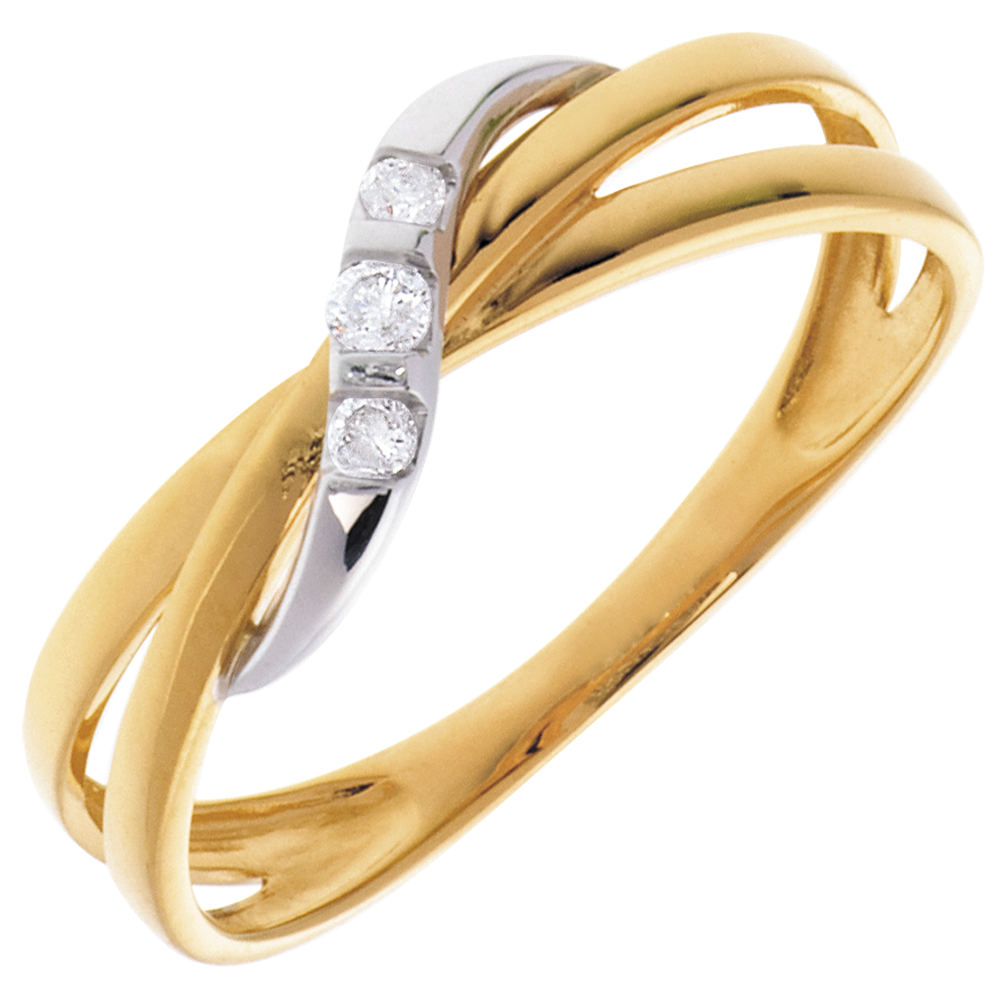 Pierścionek Obręcz z potrójnym diamentem - 3 diamenty - złoto białe i złoto żółte 18-karatowe