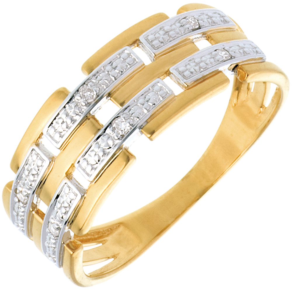 Pierścionek Osnowa wysadzany diamentami - 6 diamentów - złoto białe i złoto żółte 18-karatowe