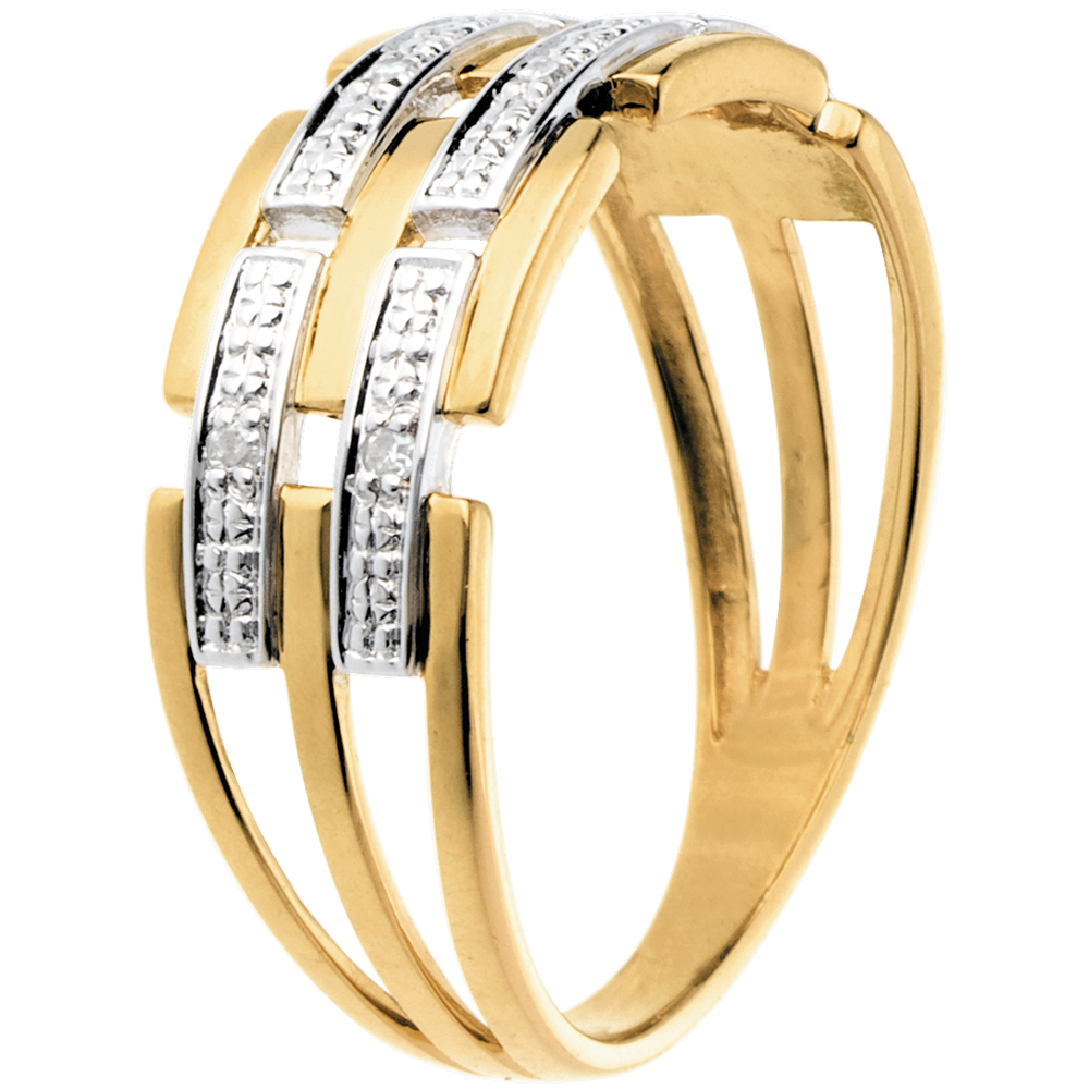 Doskonały splot listewek z żółtego złota i diamentów w wyjątkowej oprawie.