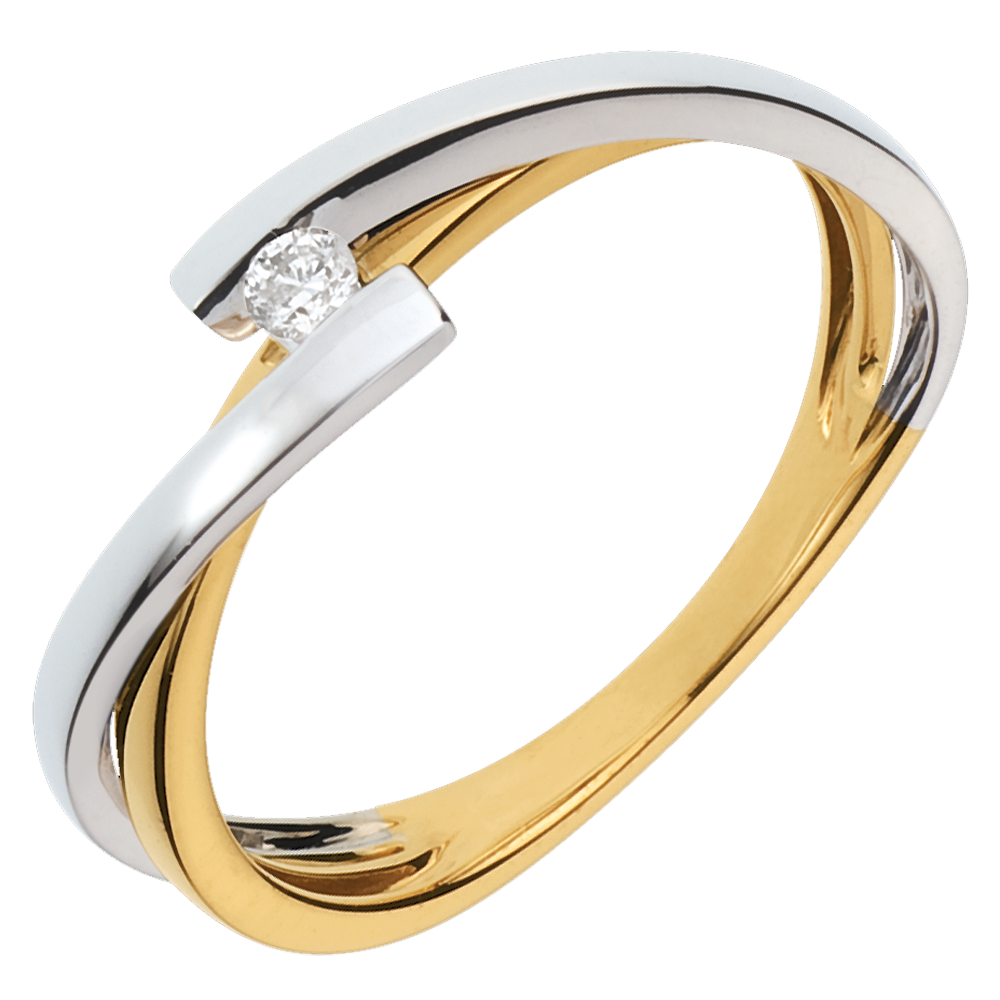 Pierścionek Pluton z jednym diamentem - diament 0,04 karata - złoto białe i złoto żółte 18-karatowe