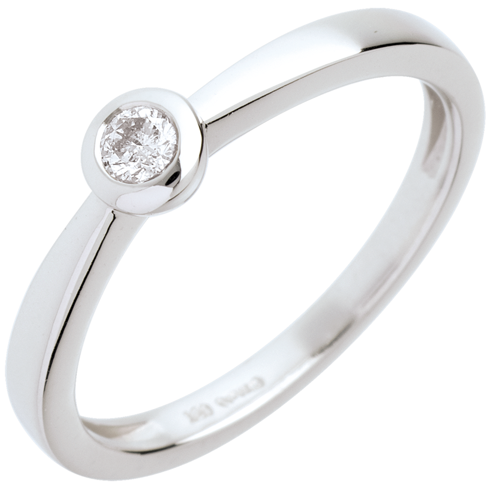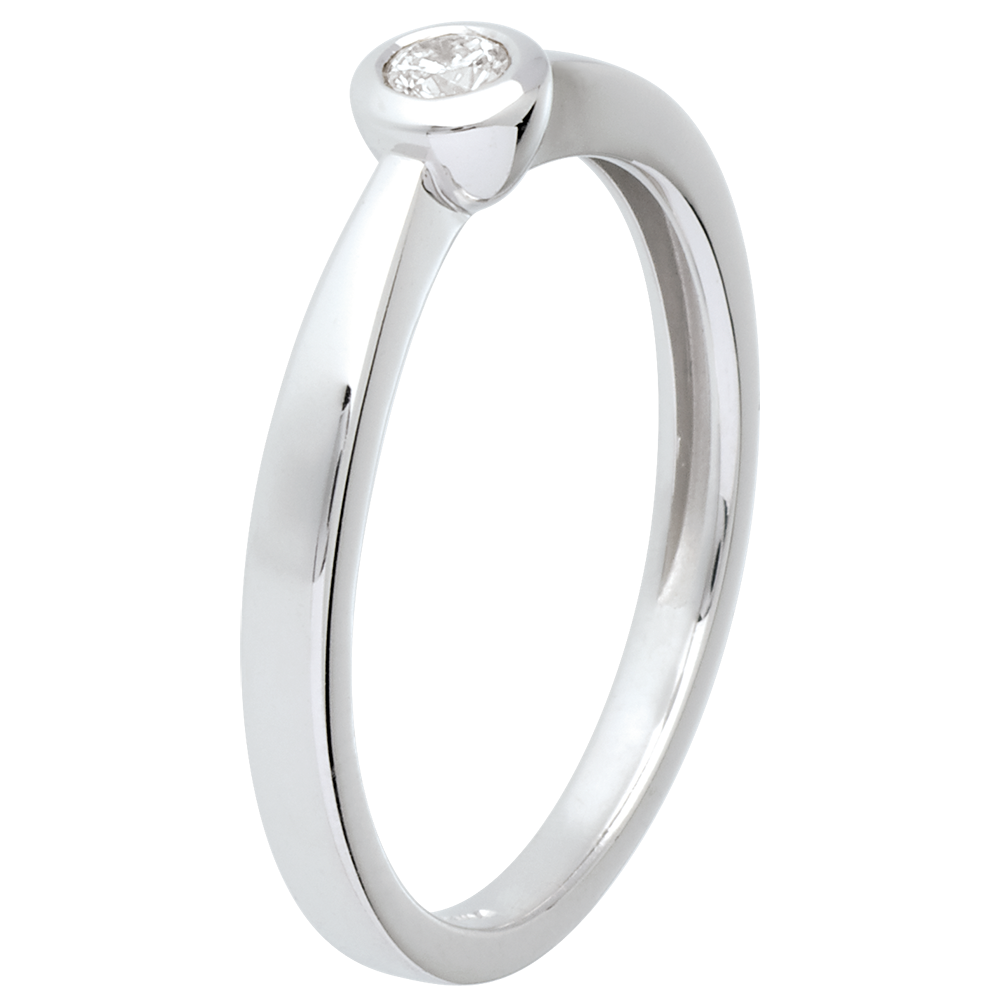 Pierścionek z pojedynczym diamentem w pełnej oprawie z białego złota 18-karatowego - 0,11 karata