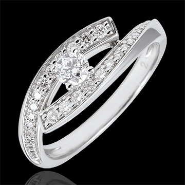 Pierścionek Przeznaczenie z jednym diamentem - Diwa - złoto białe 9-karatowe - mały model - 0,08 karata