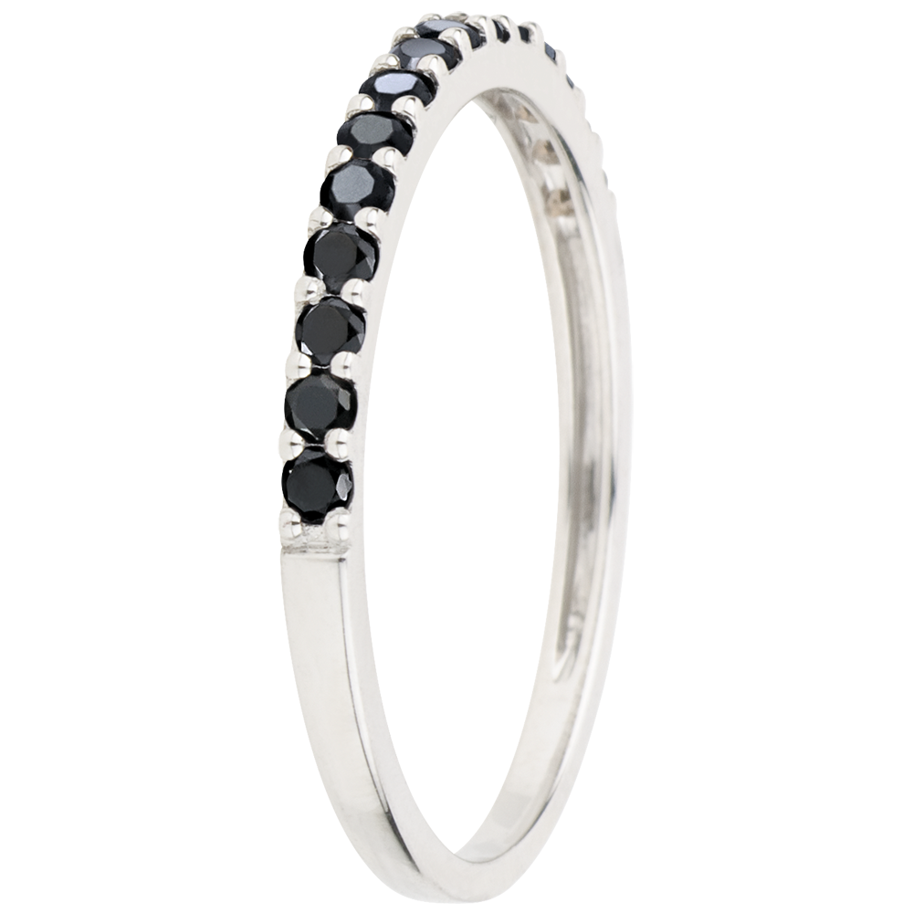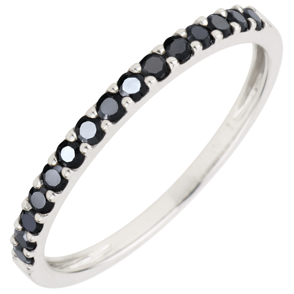 Pierścionek Rajski Ptak - jeden rząd - złoto białe 9-karatowe i czarne diamenty