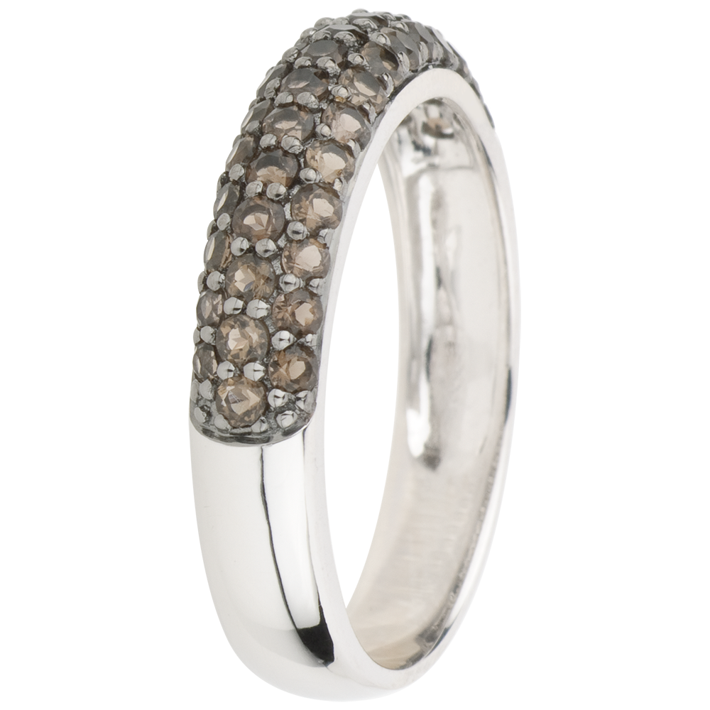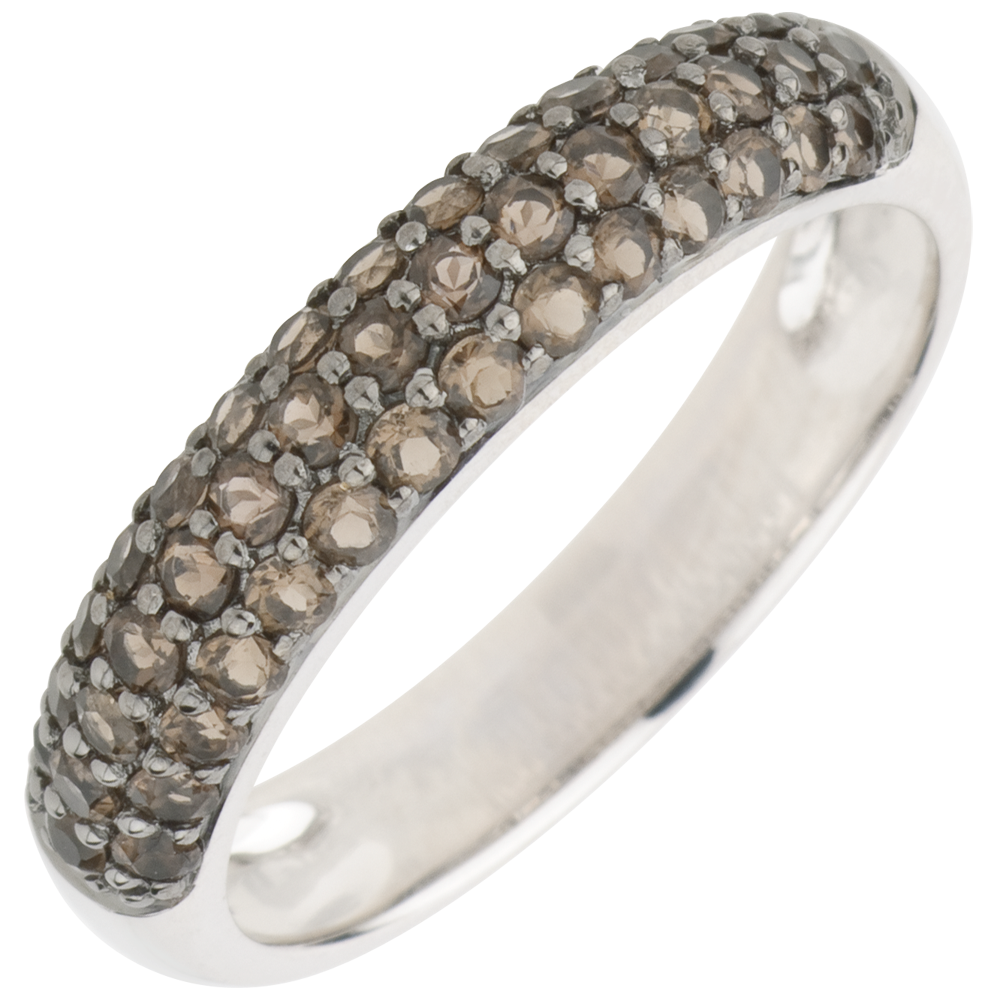 Pierścionek Rajski Ptak - trzy rzędy - złoto białe 9-karatowe i kwarc dymny