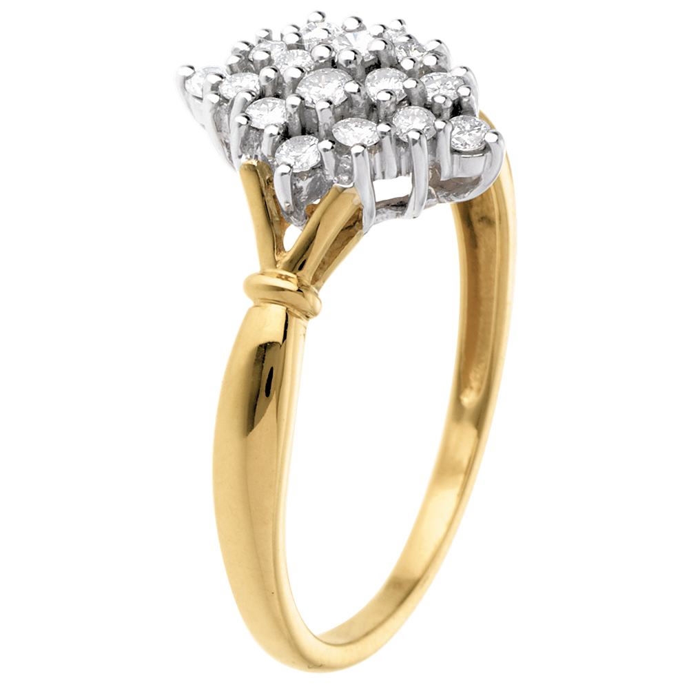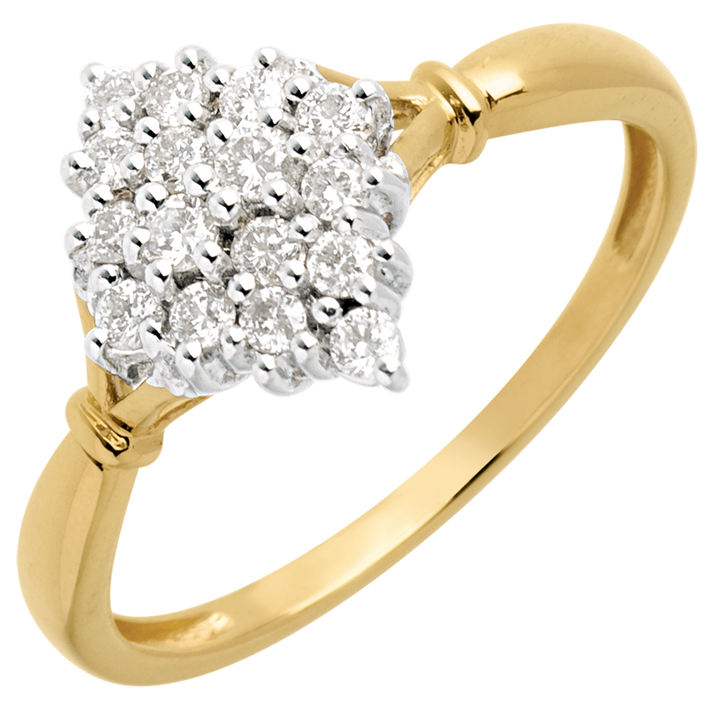 Pierścionek Romb wysadzany diamentami - 0,33 karata - 16 diamentów - złoto białe i złoto żółte 18-karatowe