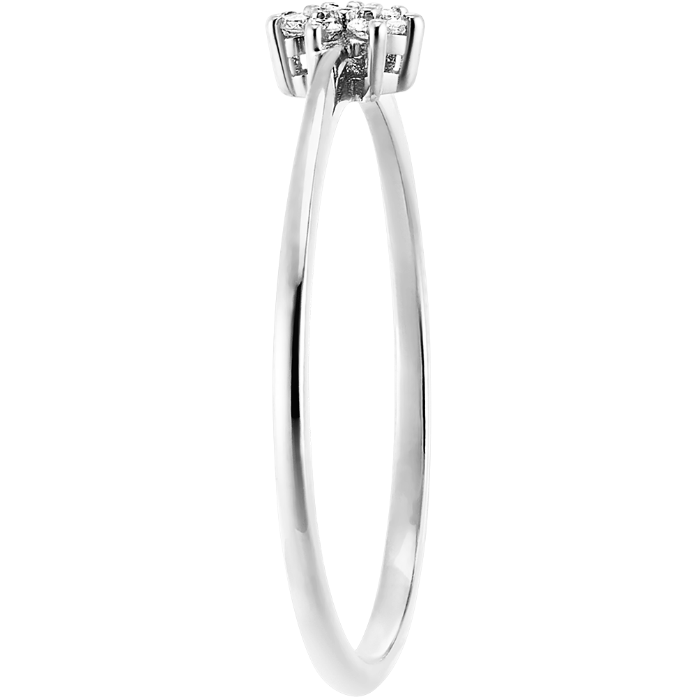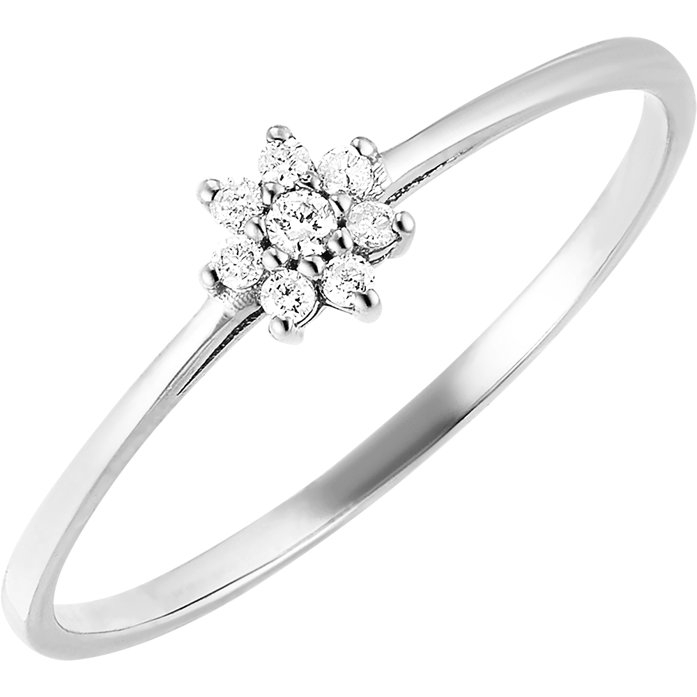 Subtelny pierścionek w kształcie stokrotki wysadzany diamentami zachwycający swoim delikatnym i kobiecym designem.