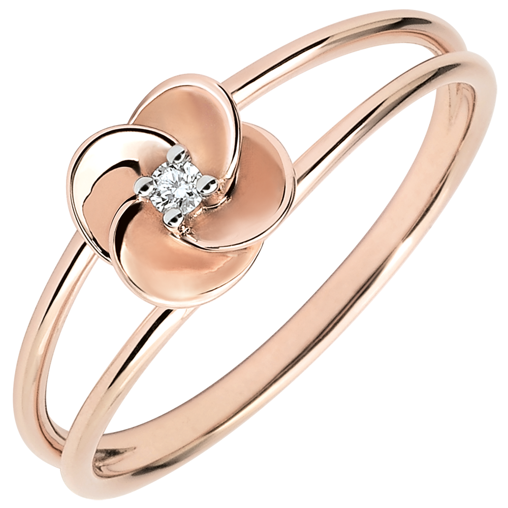 Pierścionek Rozkwit - Pierwsza Róża - złoto różowe 9-karatowe i diament