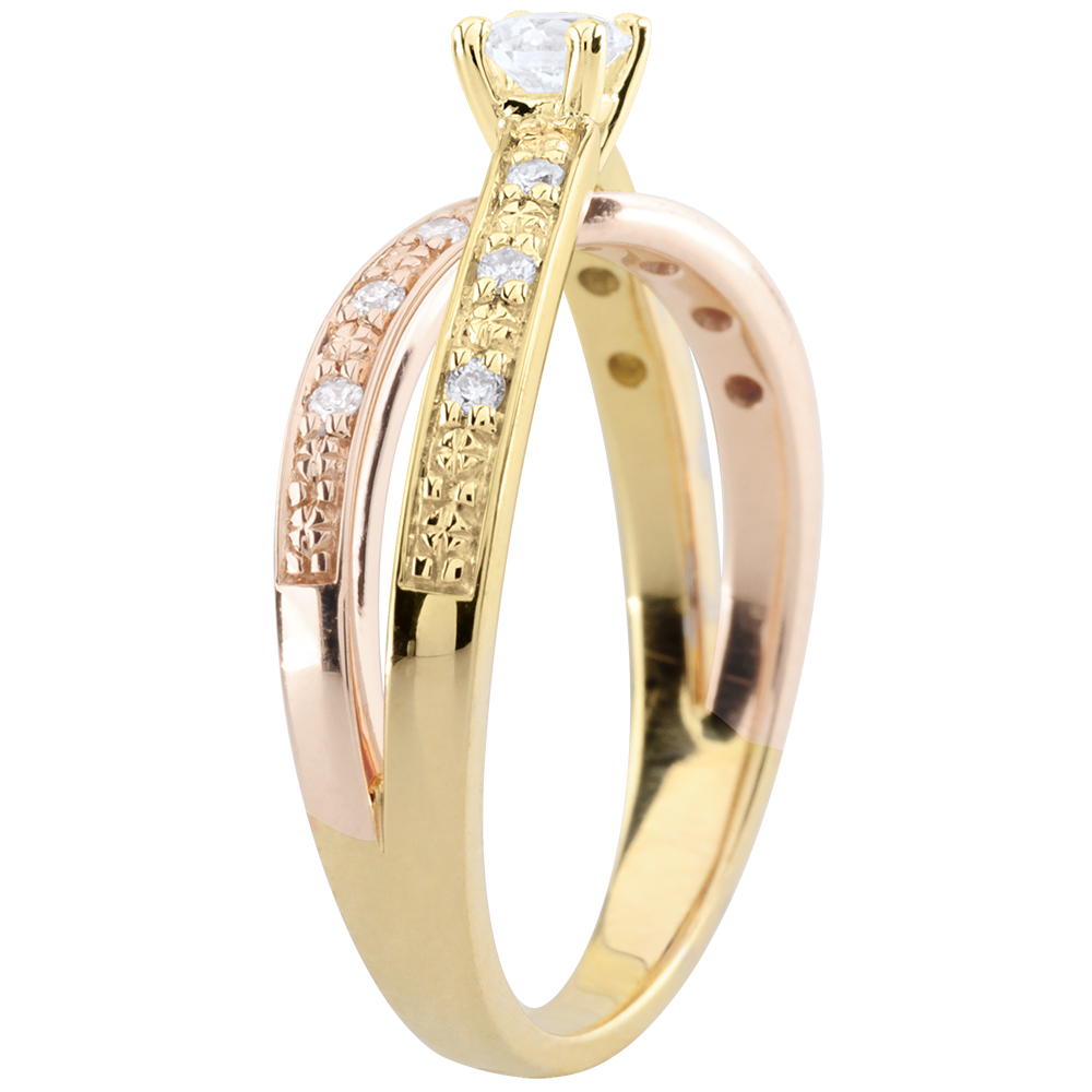 Pierścionek Saturn Duo z diamentem środkowym 0,15 karata - złoto białe i złoto różowe 18-karatowe