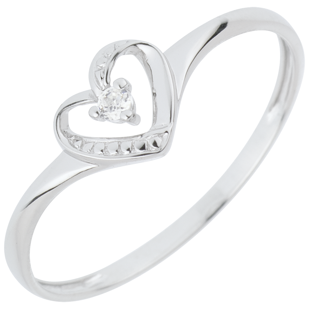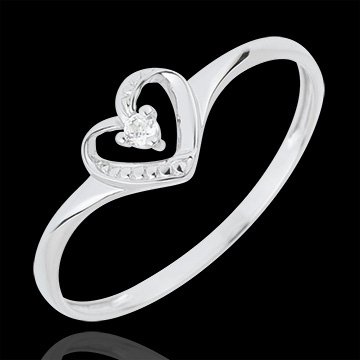 Pierścionek Serce Miłości z jednym diamentem - złoto białe 18-karatowe