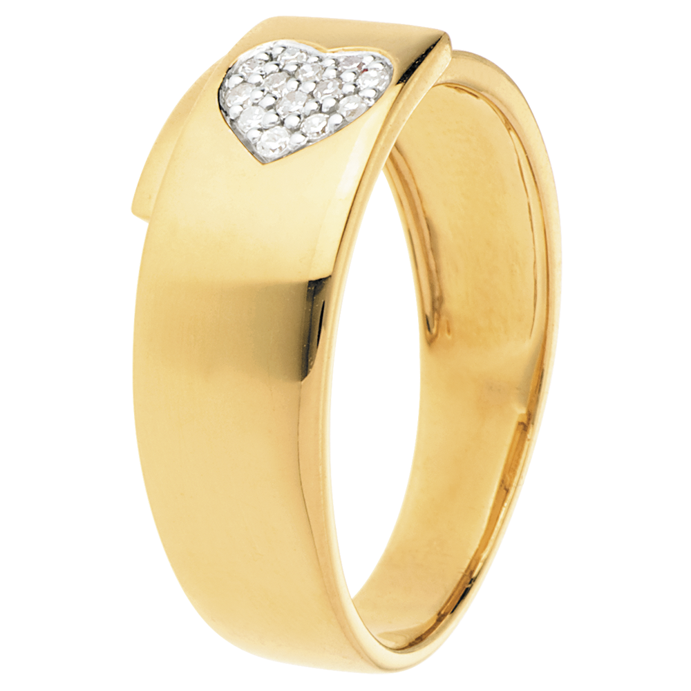 Pierścionek Nieskończoność Serce z żółtego złota 18-karatowego wysadzany diamentami - 13 diamentów
