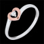 Różowe złote serce mieści diament o masie 0,03 karata, osadzony na falistej oprawie z białego złota.