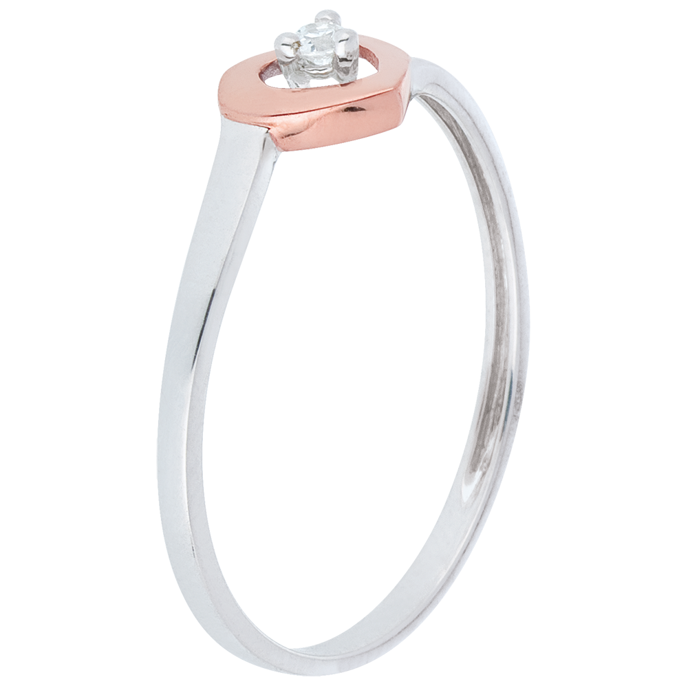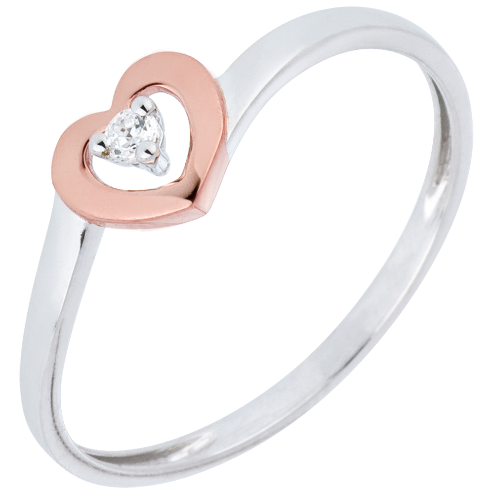 Pierścionek Serduszka - diament 0,03 karata - złoto białe i złoto różowe 9-karatowe