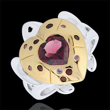 Mały żółw miłości nosi na swojej skorupie pokrytej żółtym złotem serce z rubinów otoczone ametystami i granatami. Serce jest wykonane z rodolitu.…