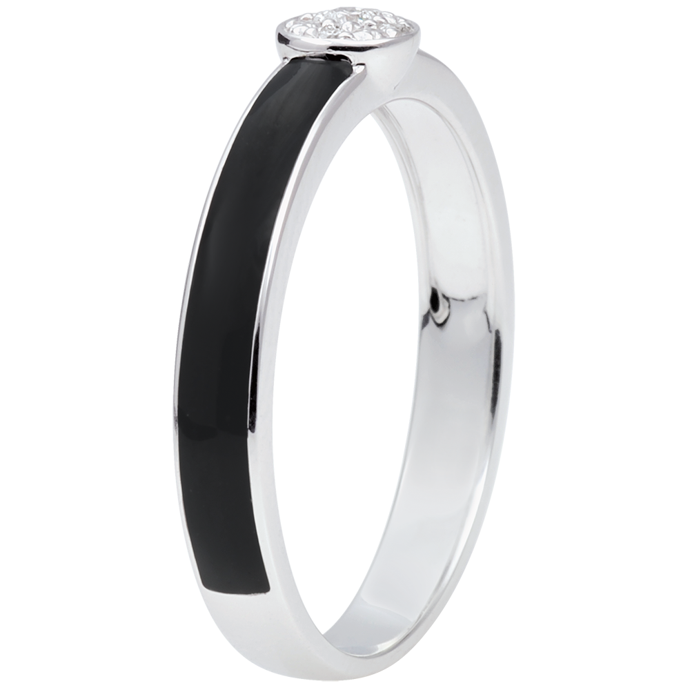 Pierścionek Światłocień z jednym diamentem - czarna laka i diamenty 0,04 karata - złoto białe 9-karatowe