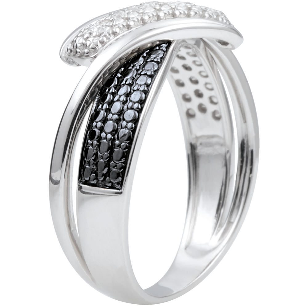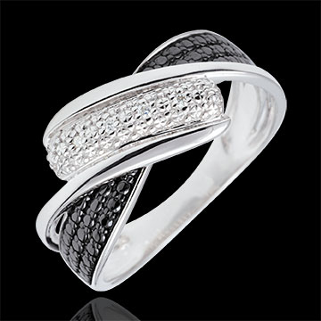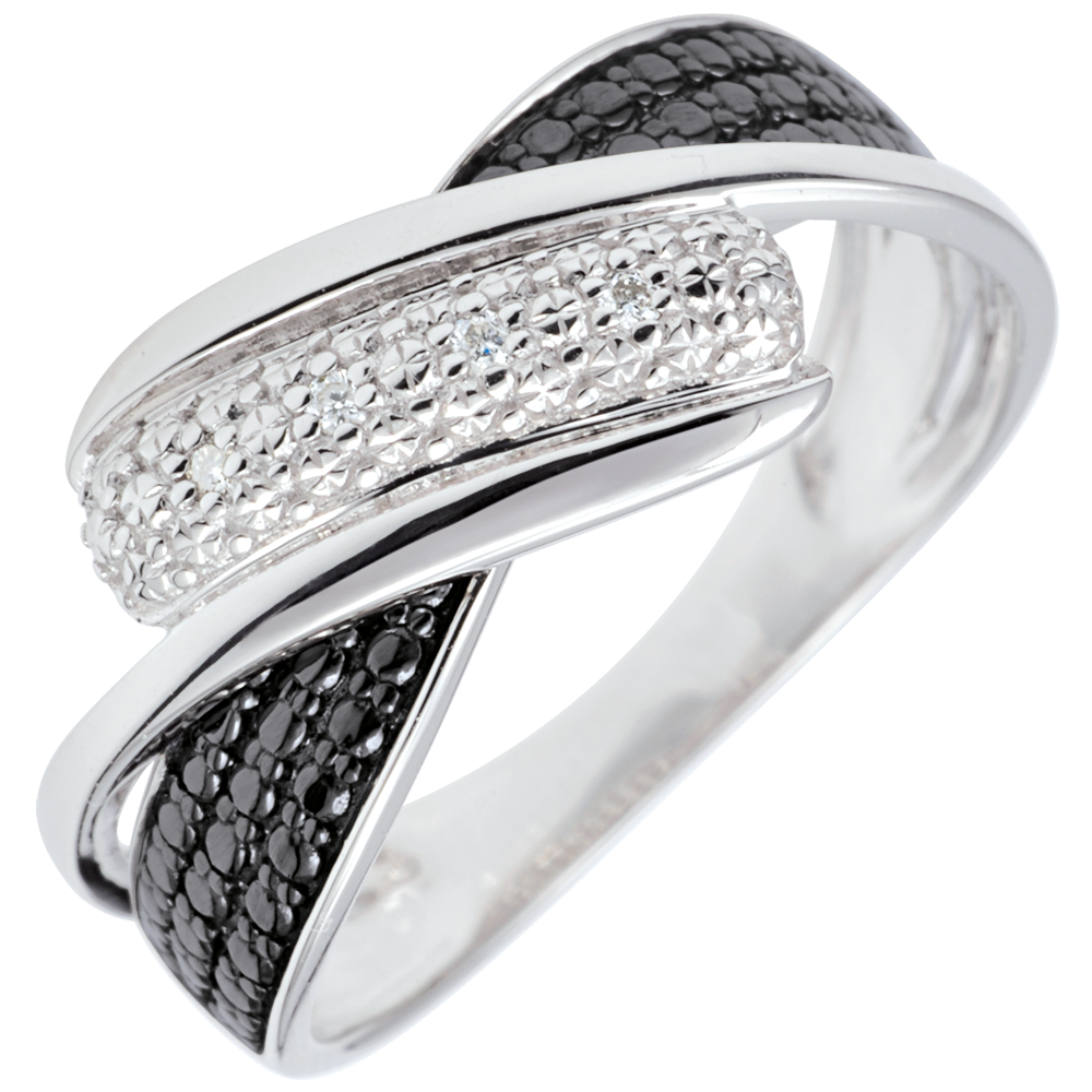 Pierścionek Światłocień - Ruch - białe diamenty - złoto białe 9-karatowe