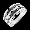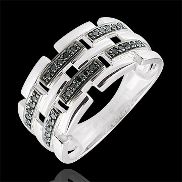 Trzy złote wypunktowane linie są oddzielone wypunktowaniem z czarnych diamentów. Pierścionek Światłocień w nowoczesnym i kobiecym wydaniu.