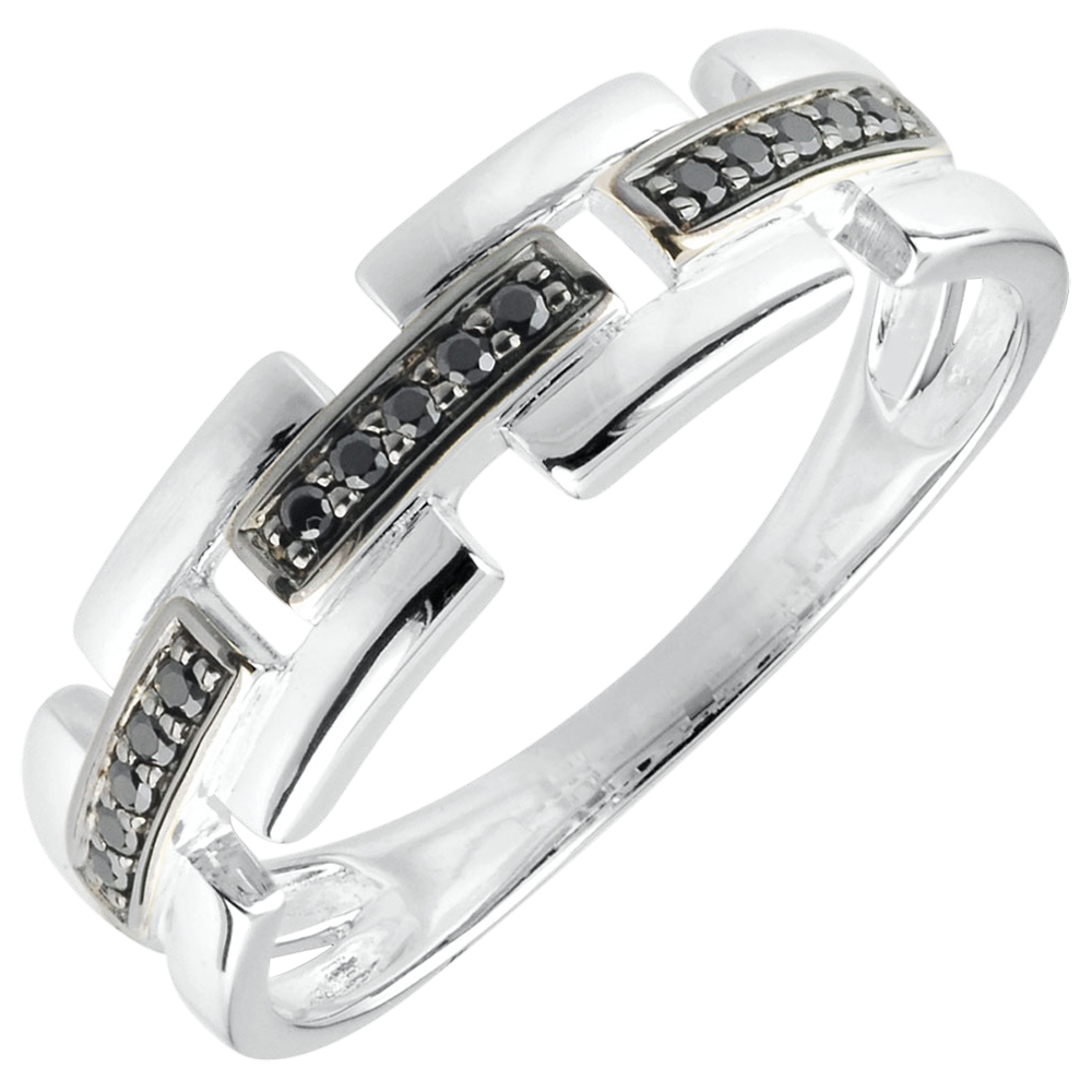 Dwie złote wypunktowane linie są oddzielone wypunktowaniem z czarnych diamentów. Pierścionek Światłocień w nowoczesnym i kobiecym wydaniu.