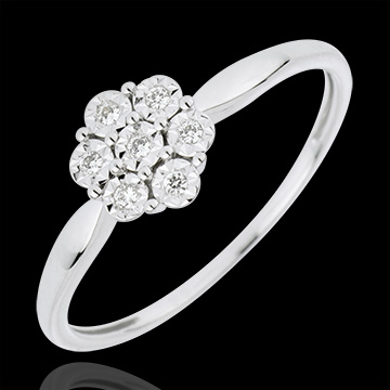 Pierścionek Świeżość z jednym diamentem - Płatkowy Kwiat - 7 diamentów - złoto białe 18-karatowe
