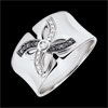 Stylizowana lilia z białego złota i czarnych diamentów na szerokiej i kunsztownej oprawie.