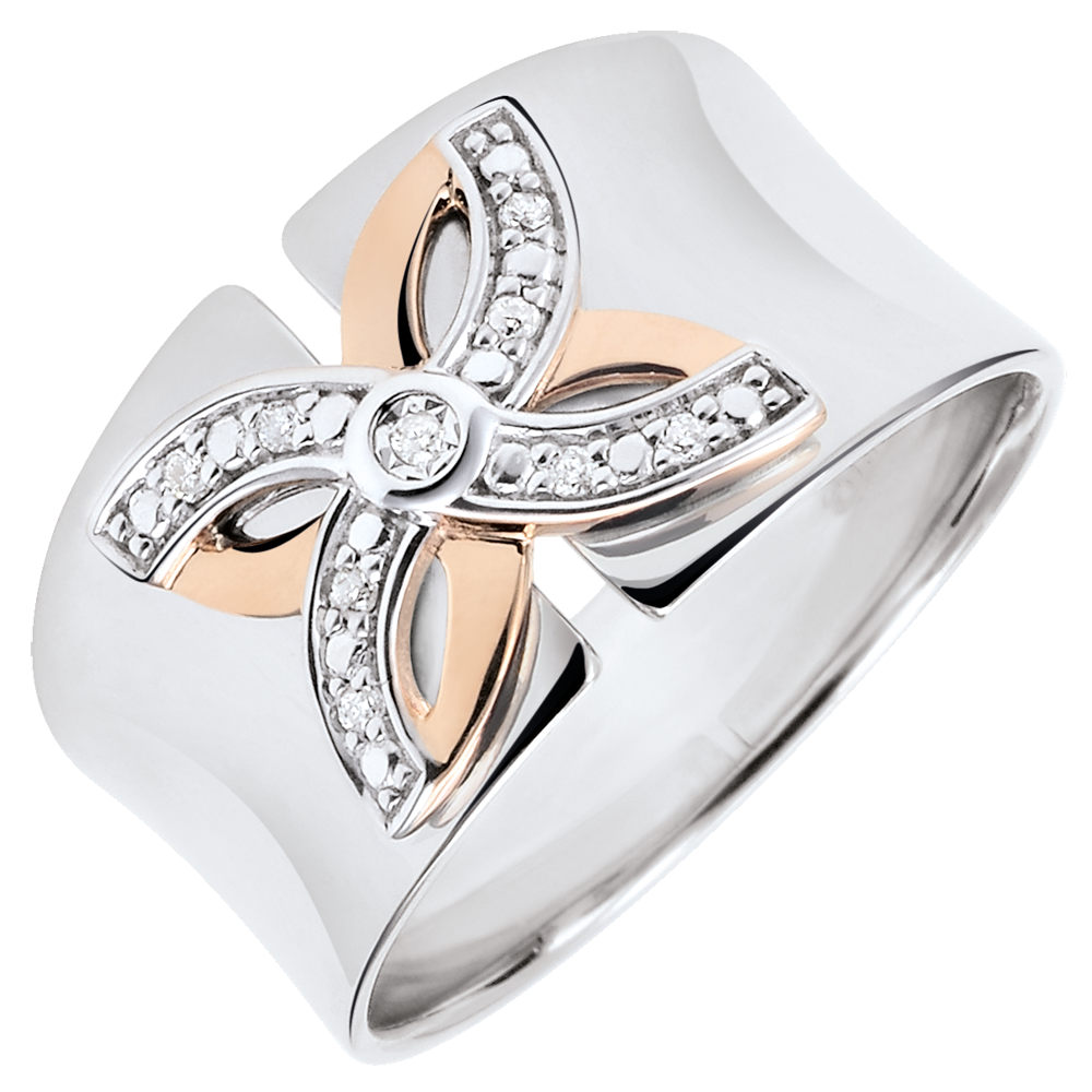 Pierścionek Świeżość - Letnia Lilia - złoto białe i złoto różowe 18-karatowe