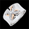 Stylizowana lilia z białego i różowego złota na szerokiej i kunsztownej oprawie.