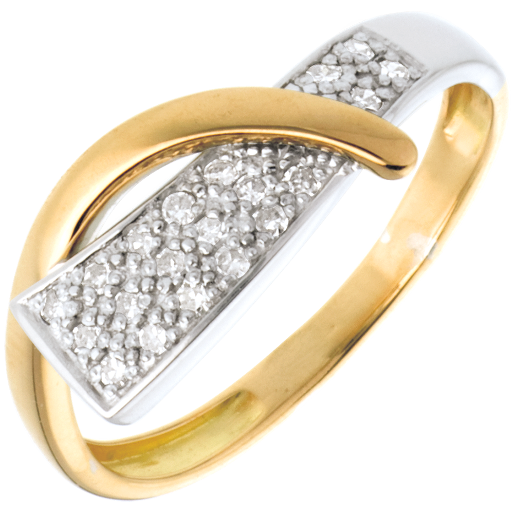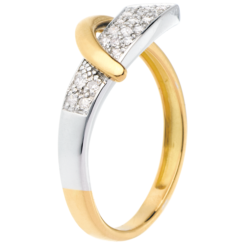 Pierścionek Syrena wysadzany diamentami - 20 diamentów - złoto białe i złoto żółte 18-karatowe