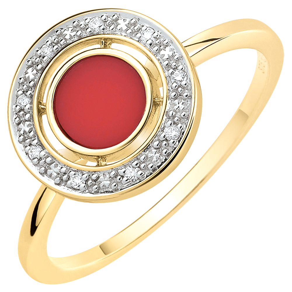 Pierścionek Szczęście - Karneol i diamenty - złoto żółte 9-karatowe