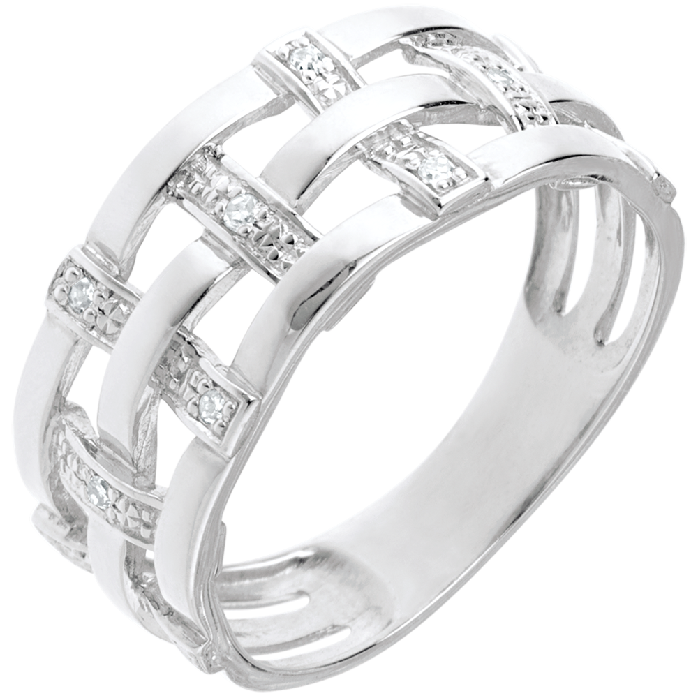 Pierścionek Szew z białego złota 18-karatowego wysadzany diamentami - 11 diamentów
