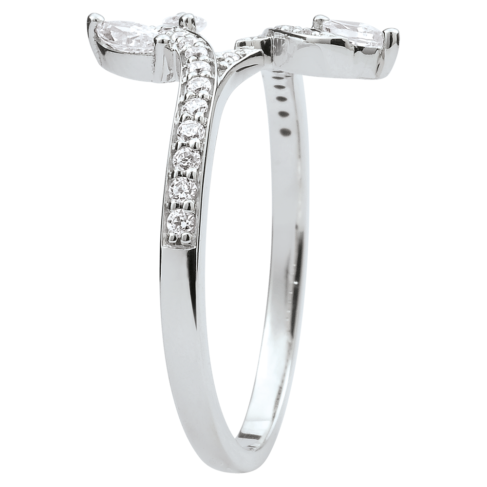 Pierścionek Tajemniczy Las - złoto białe 18-karatowe i diamenty w kształcie łezki