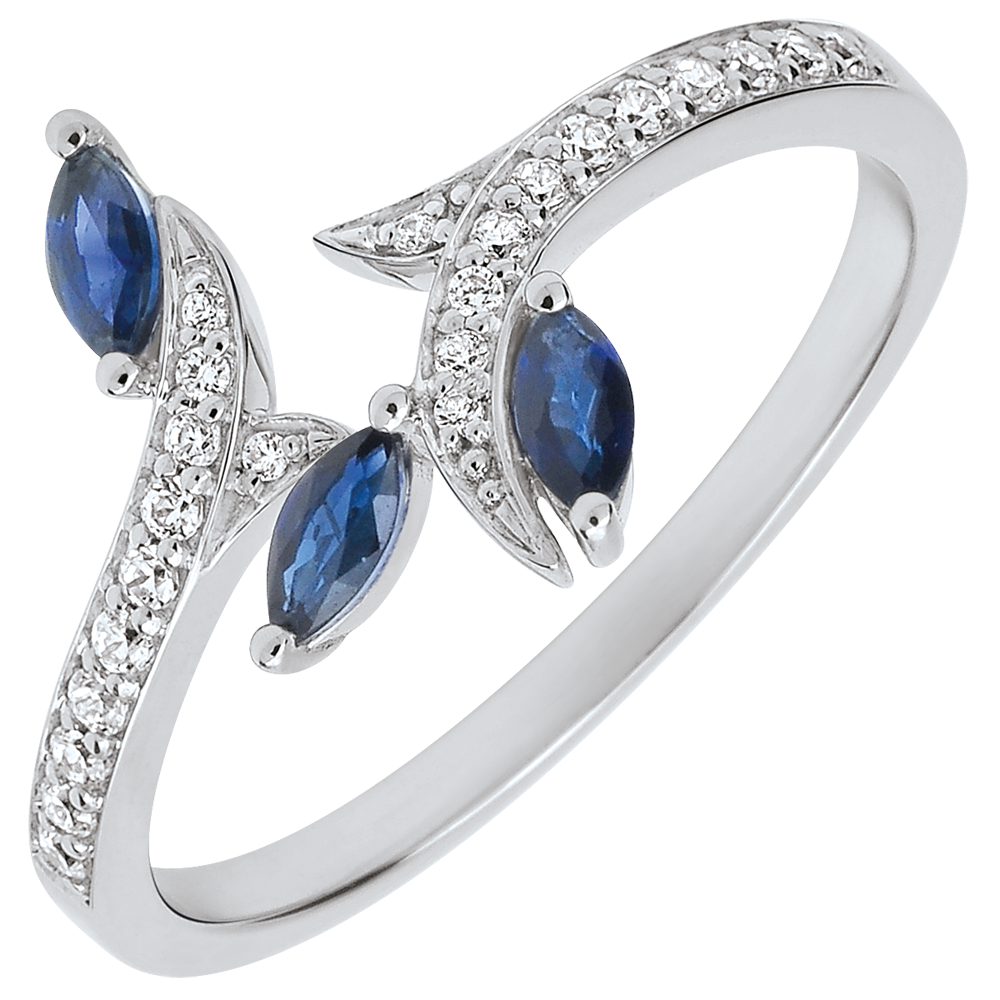 ZACZAROWANY OGRóD NR 12Pierścionek Liście - Białe złoto 375 - Niebieski szafir, Diament ID : 3523 4.9