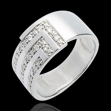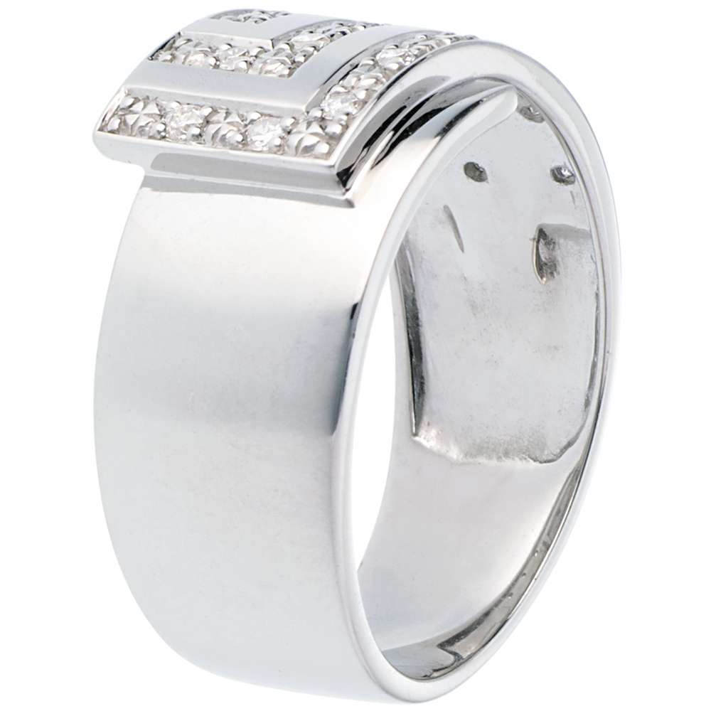 Pierścionek trójkątny z białego złota 18-karatowego wysadzany diamentami - 17 diamentów