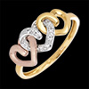 Pierścionek Trzy Serca z trzech rodzajów złota 18-karatowego i diamentów
