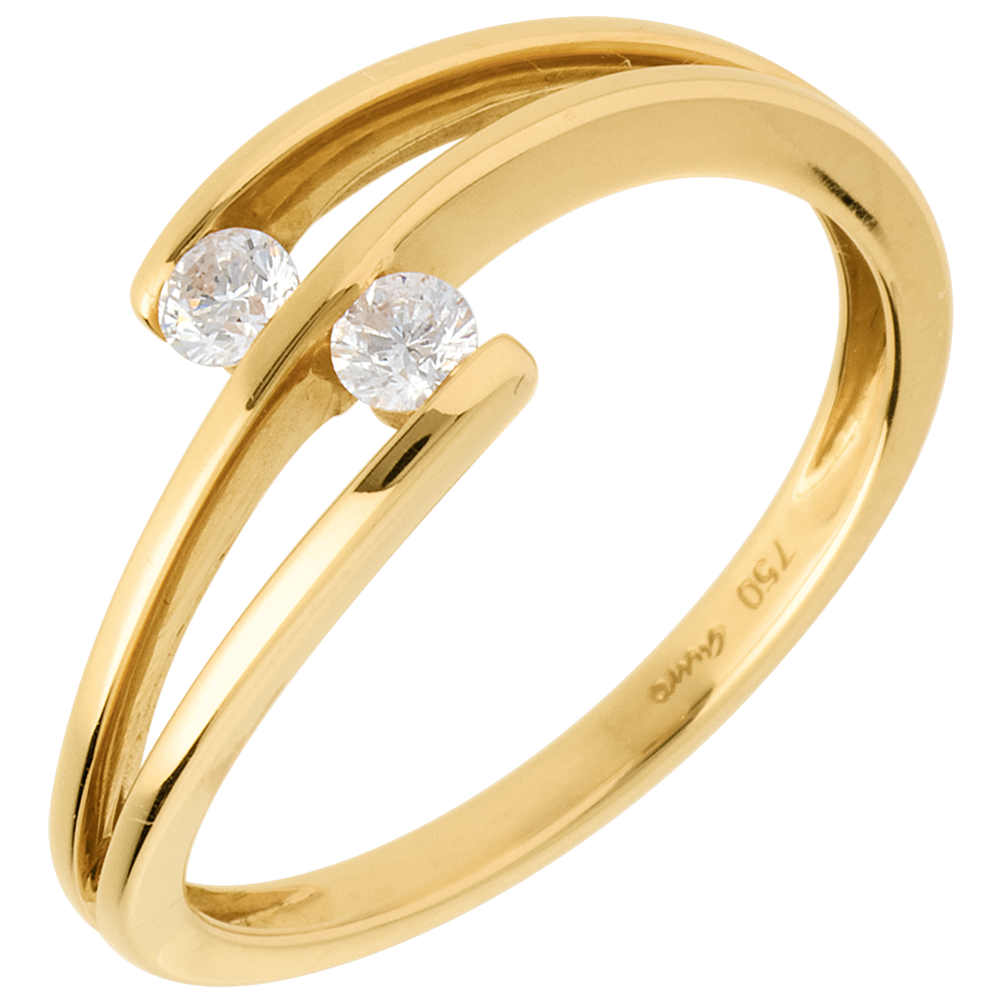 Para diamentów Ty i Ja delikatnie ujętych w obrączce z żółtego złota w kształcie orbity.