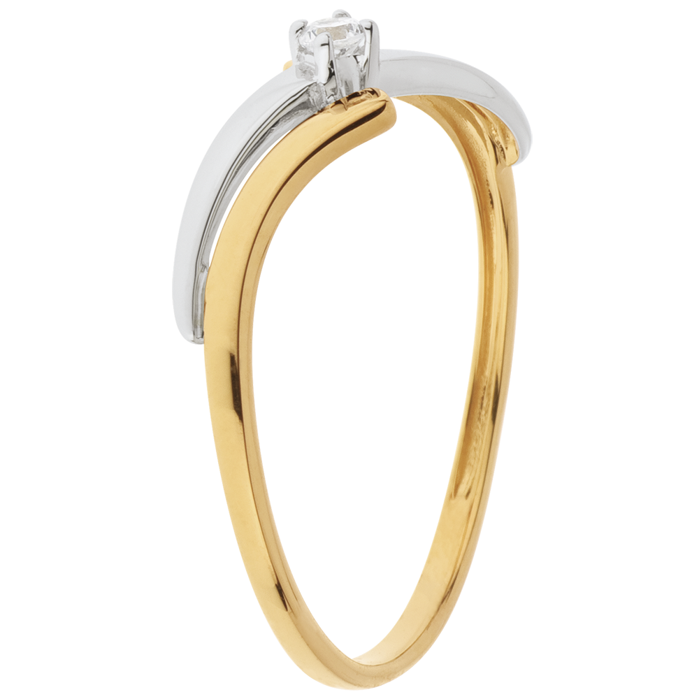 Pierścionek Ucieczka z jednym diamentem - diament 0,04 karata - złoto białe i złoto żółte 18-karatowe