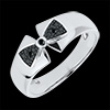 Okalająca palec wstążka z białego złota zakończona węzłem z białego złota, rodu i czarnych diamentów